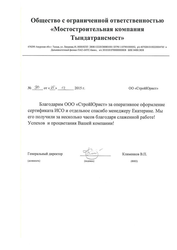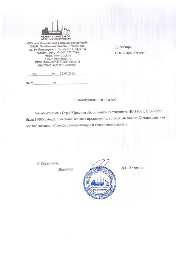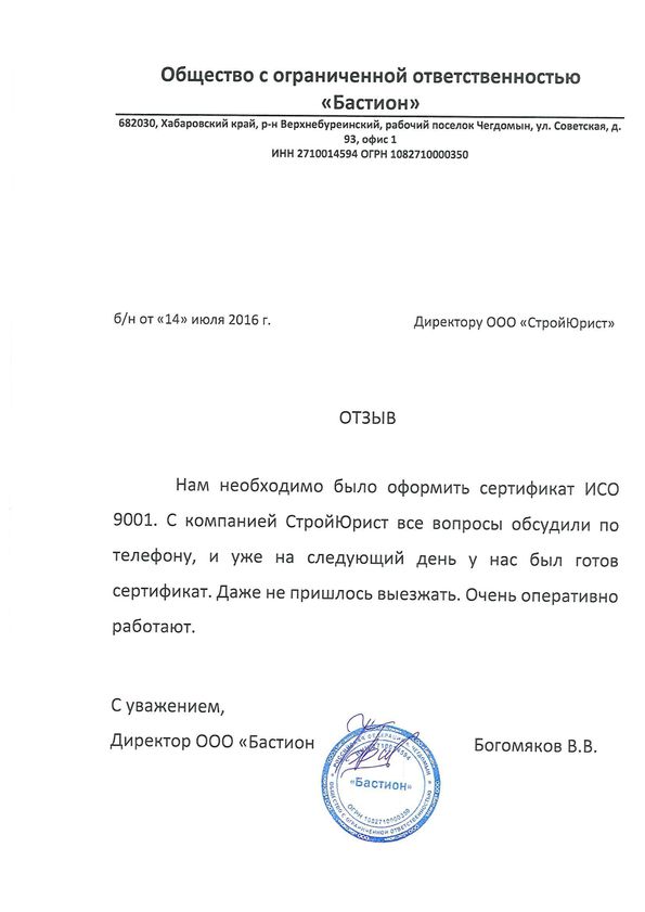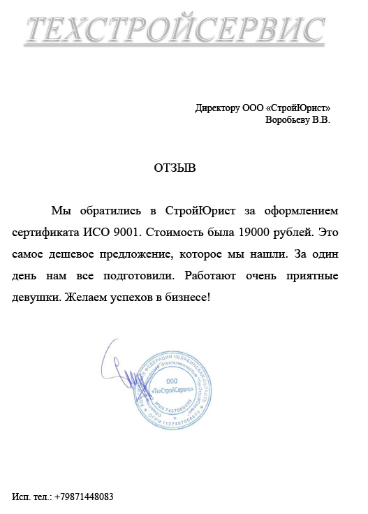 Отзывы клиентов "СтройЮрист" по ISO в Люберцах