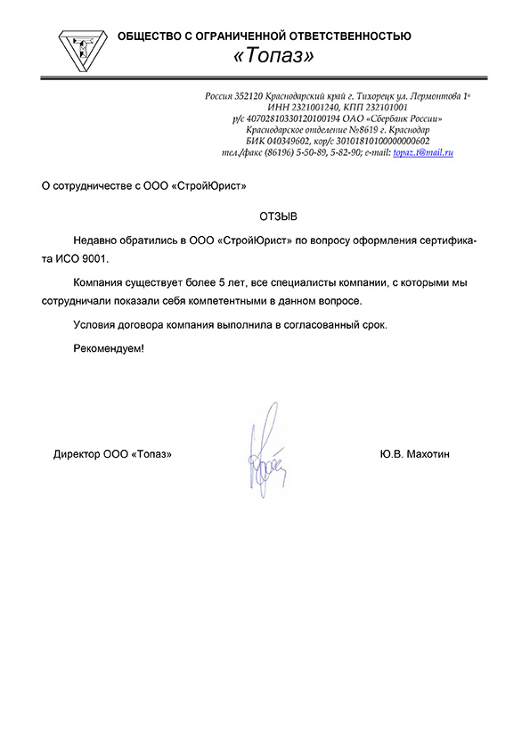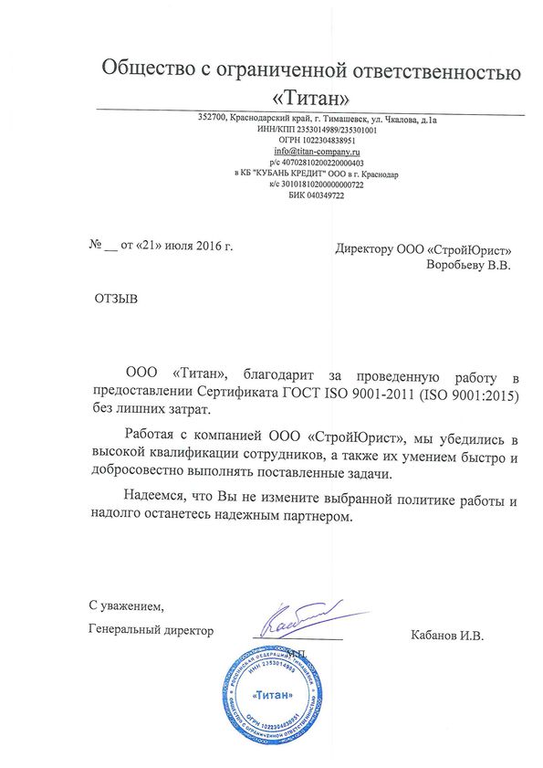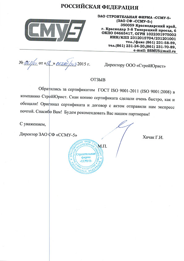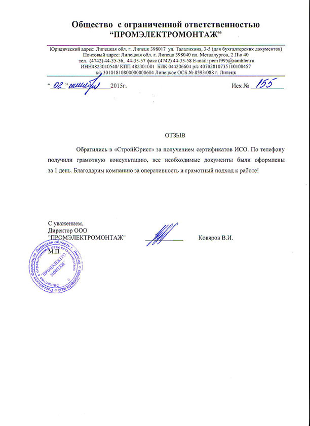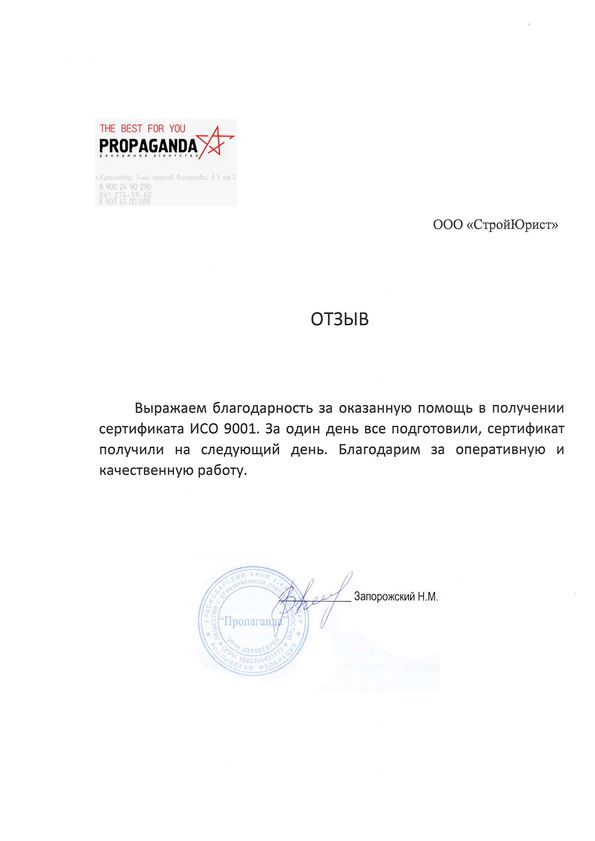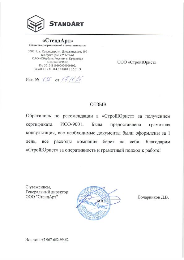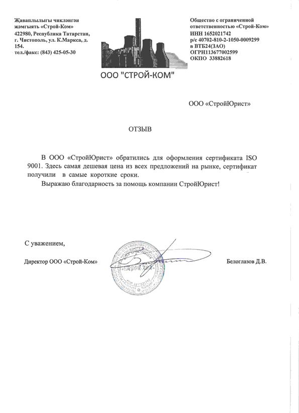 Отзывы клиентов "СтройЮрист" по ISO в Люберцах