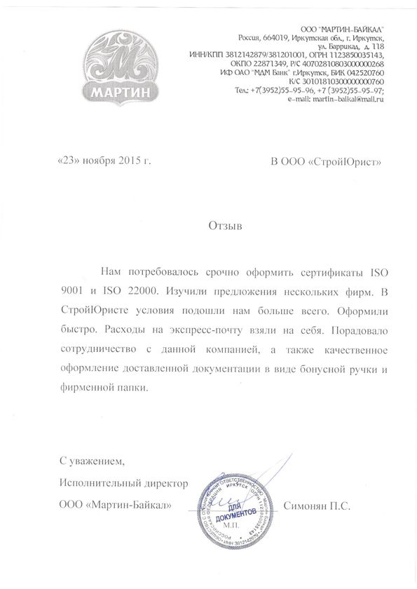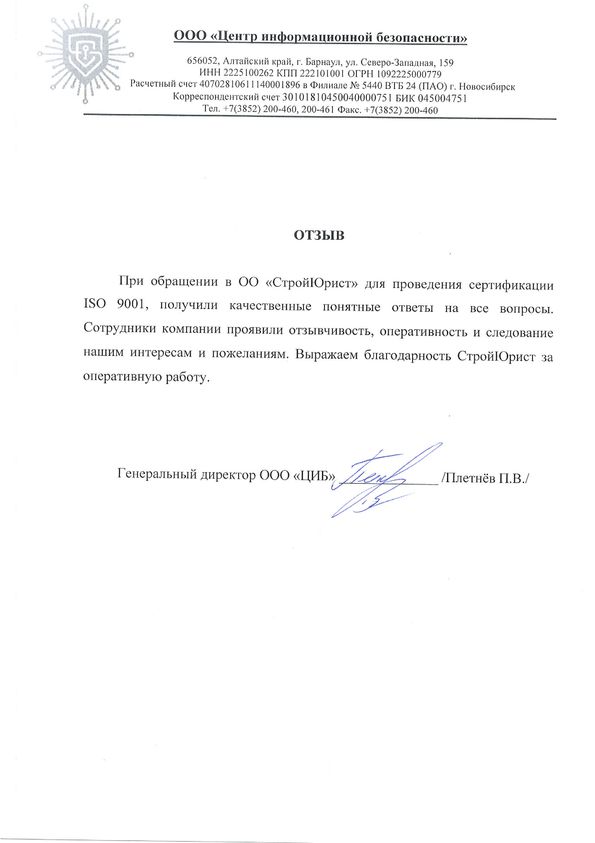 Отзывы клиентов "СтройЮрист" по ISO в Люберцах