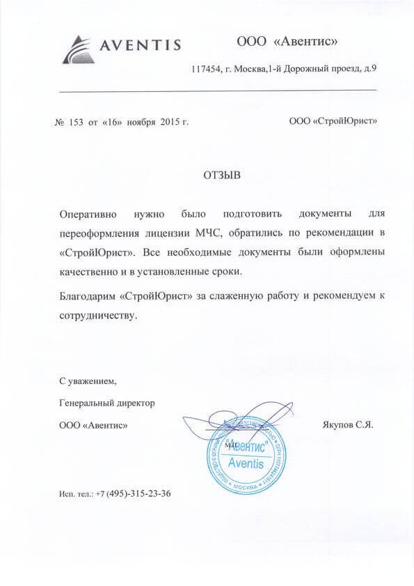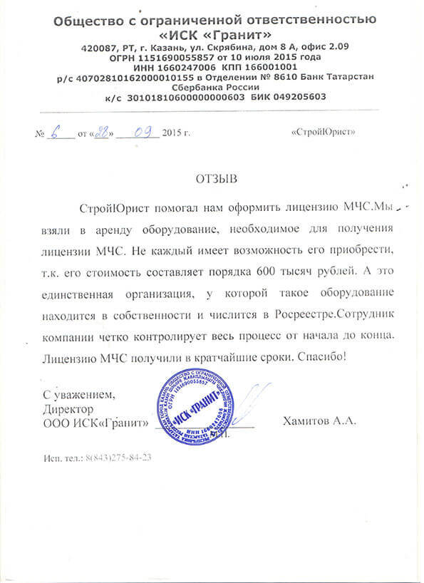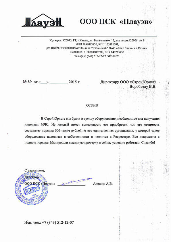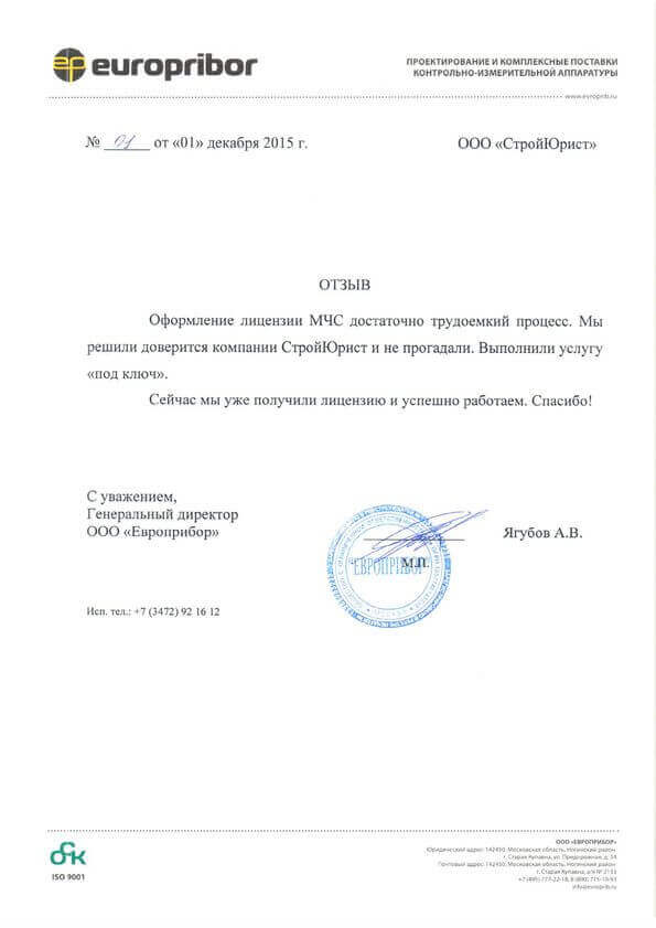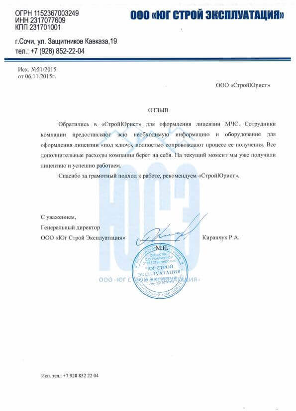 Отзывы клиентов "СтройЮрист" по лицензированию МЧС в Люберцах
