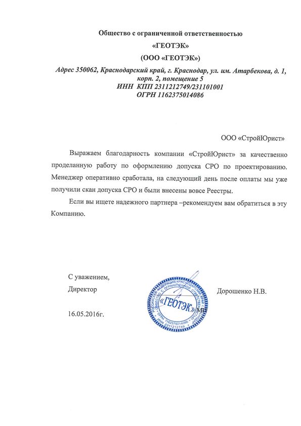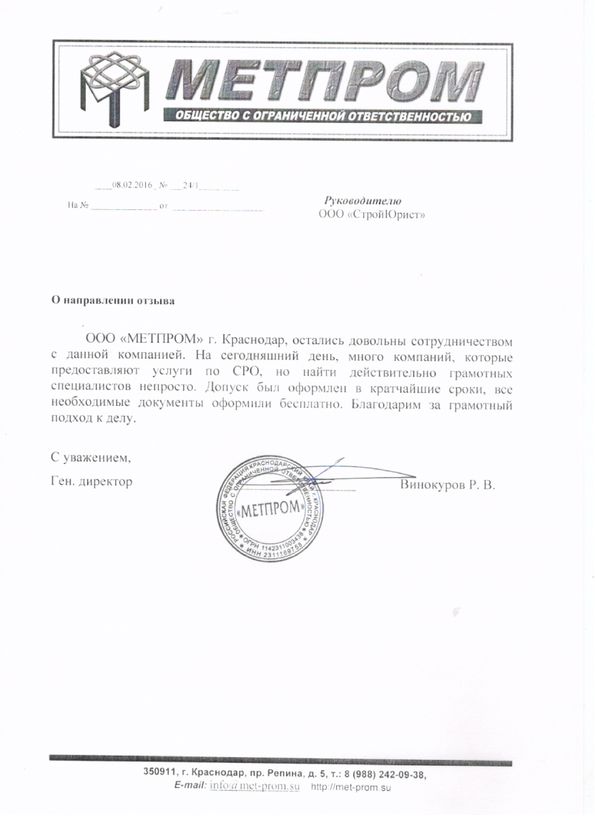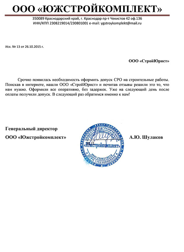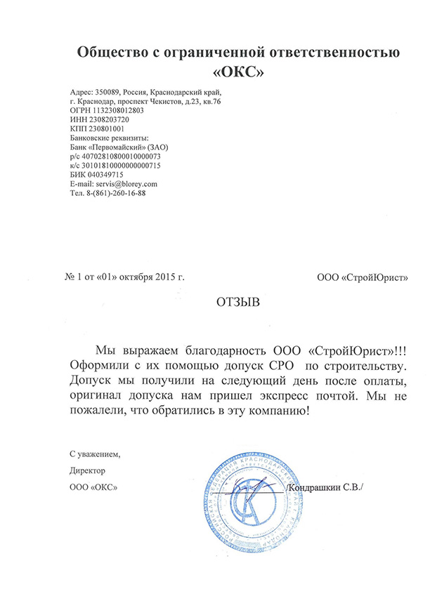 Отзывы клиентов "СтройЮрист" по вступлению в СРО в Люберцах