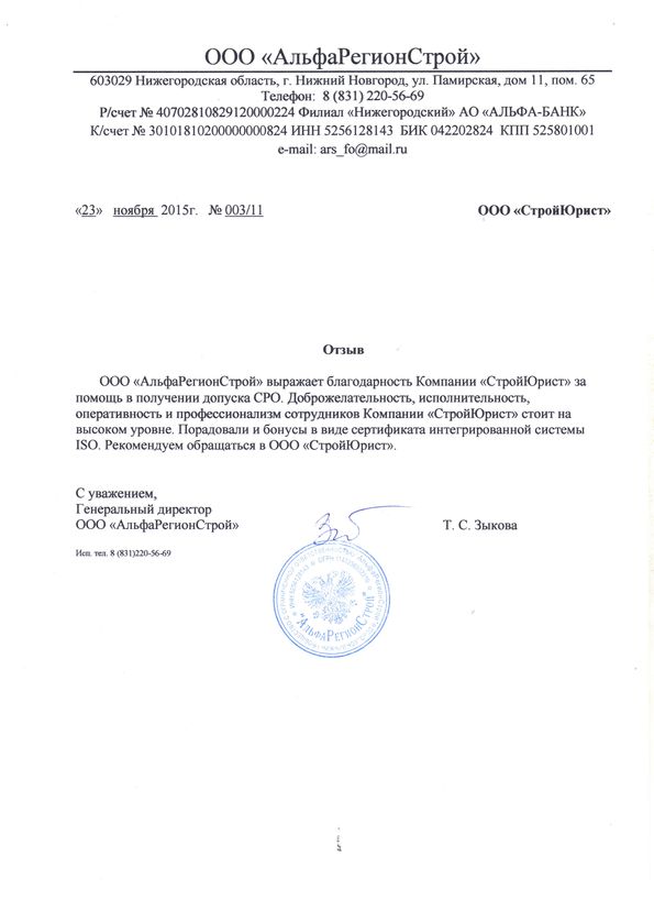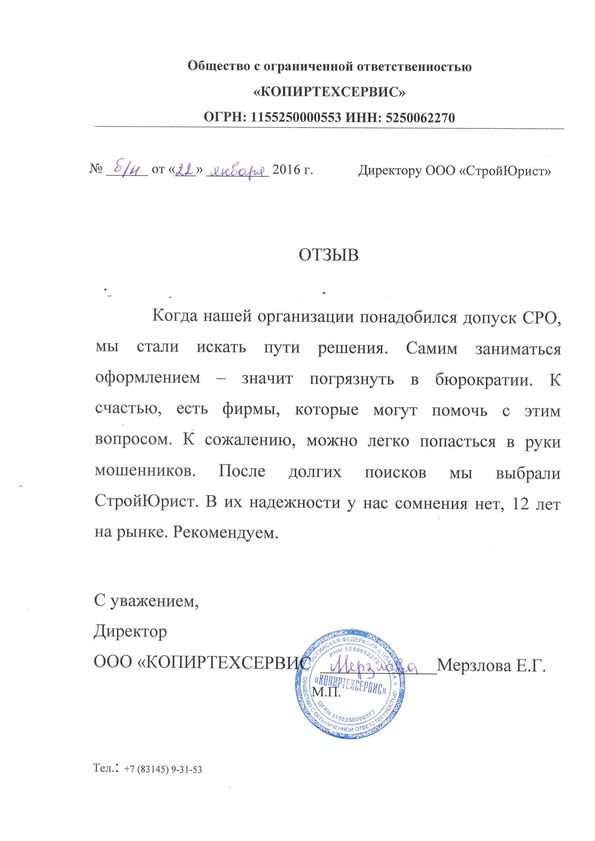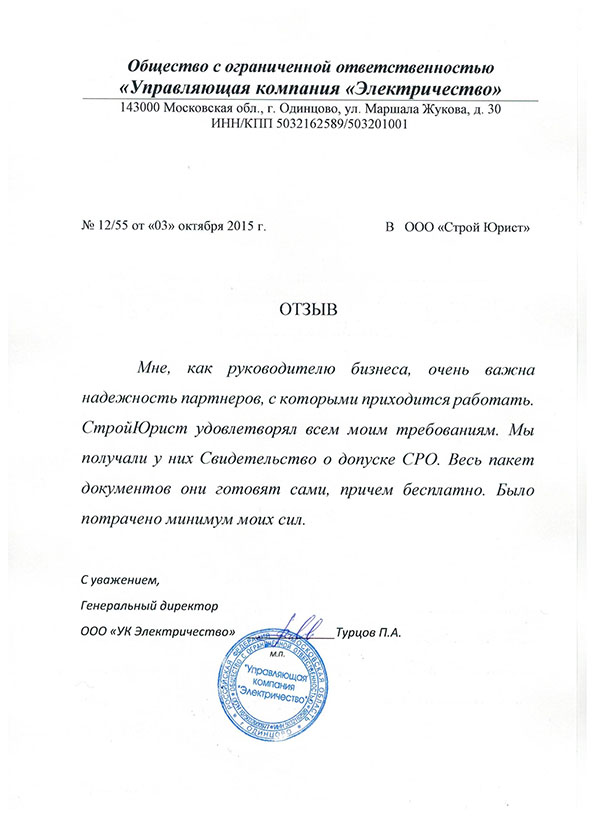Отзывы клиентов "СтройЮрист" по вступлению в СРО в Люберцах