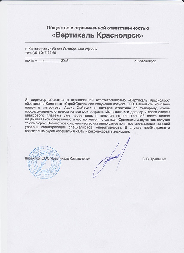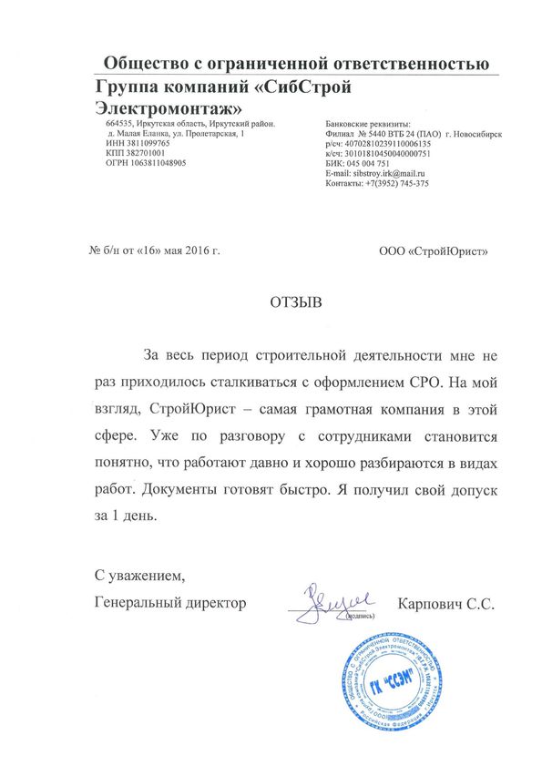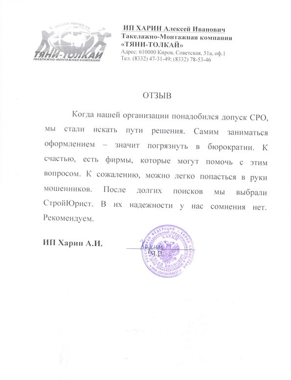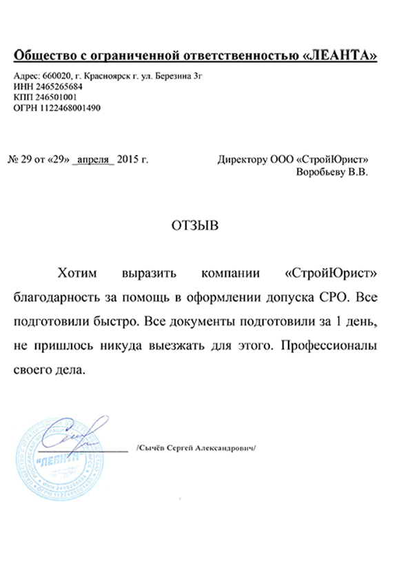 Отзывы клиентов "СтройЮрист" по вступлению в СРО в Люберцах
