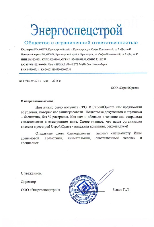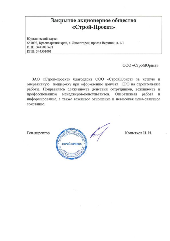 Отзывы клиентов "СтройЮрист" по вступлению в СРО в Люберцах