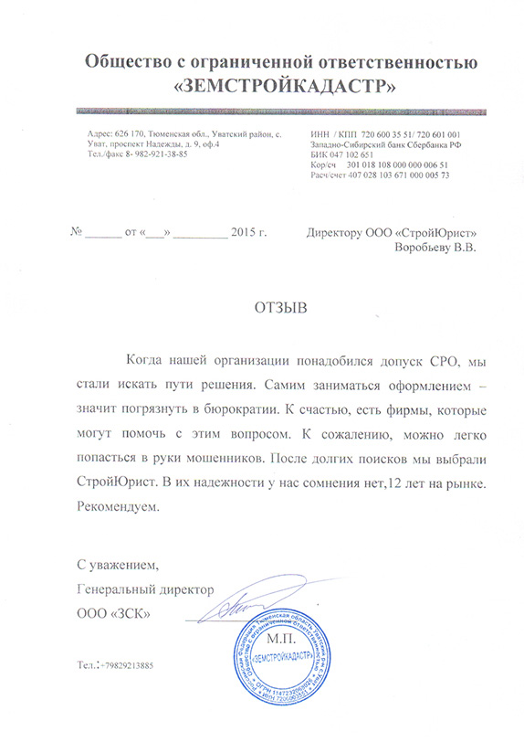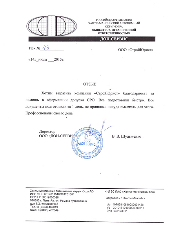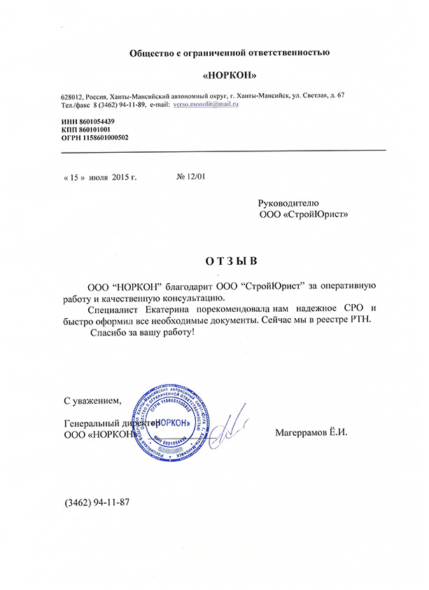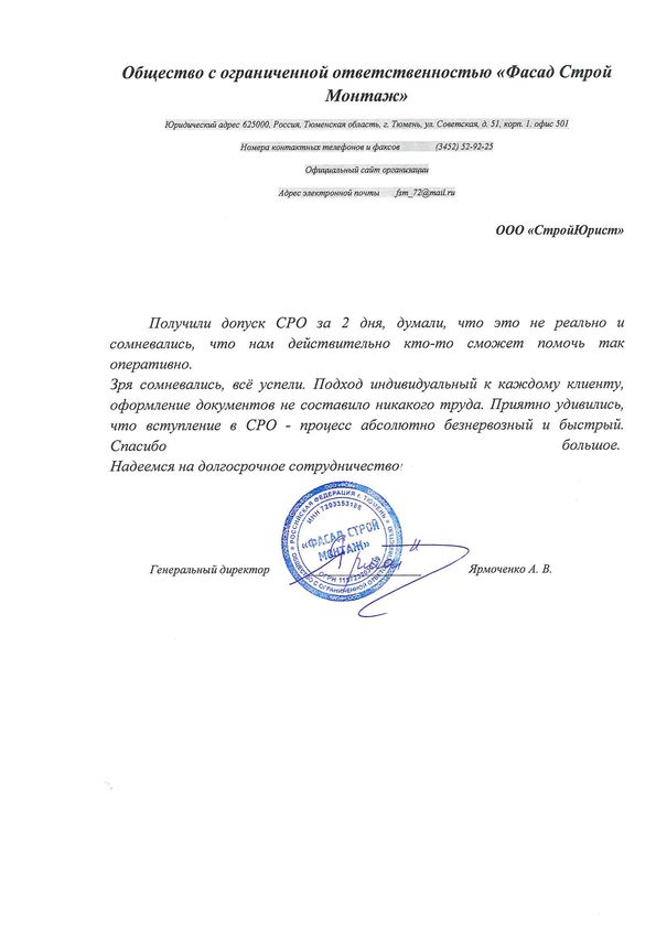 Отзывы клиентов "СтройЮрист" по вступлению в СРО в Люберцах