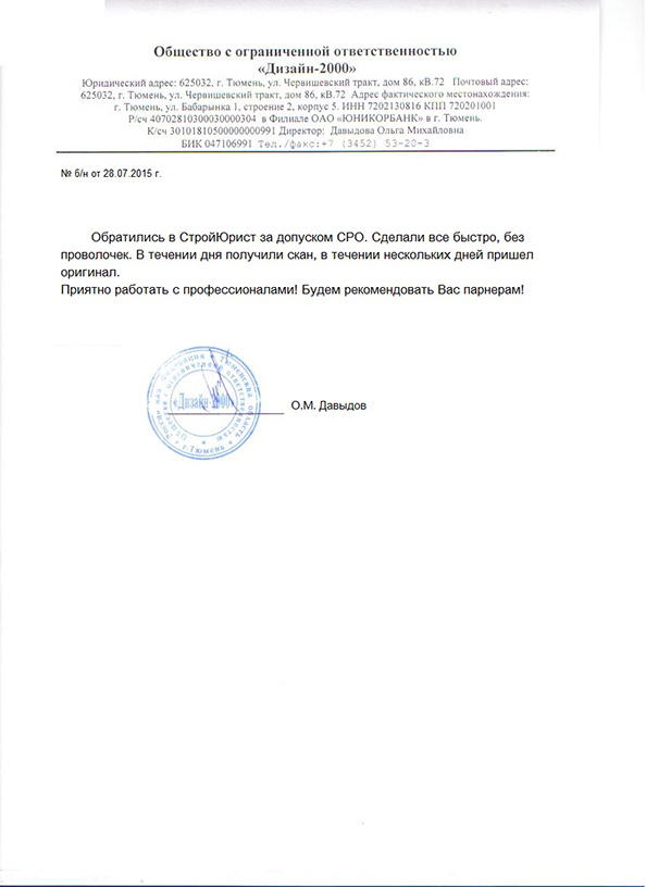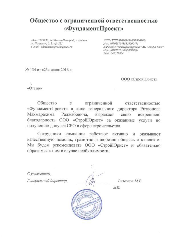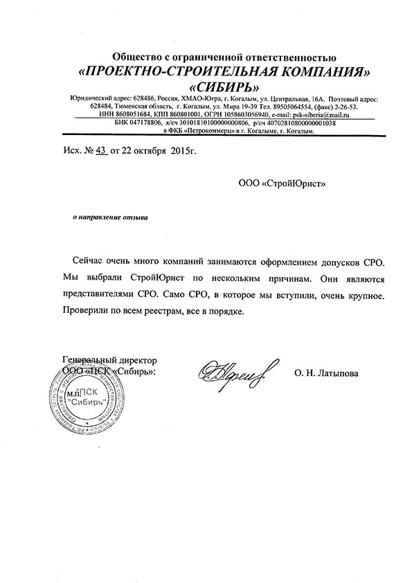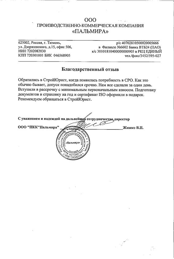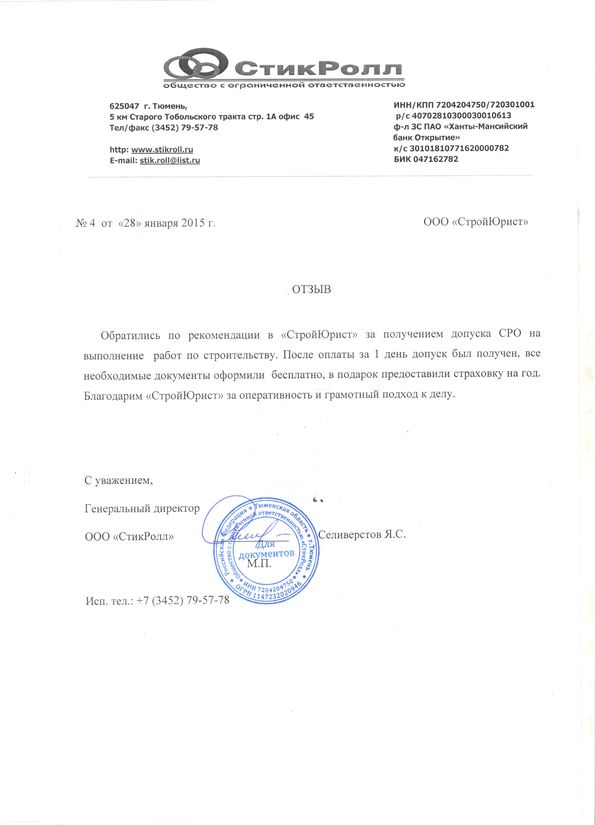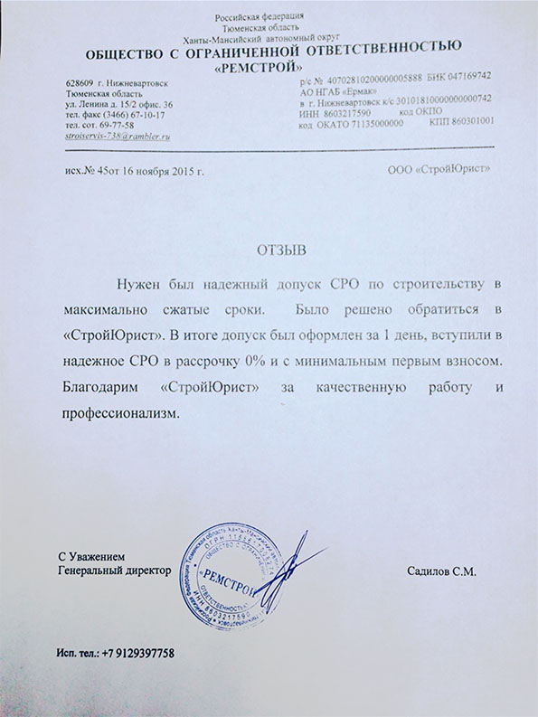Отзывы клиентов "СтройЮрист" по вступлению в СРО в Люберцах