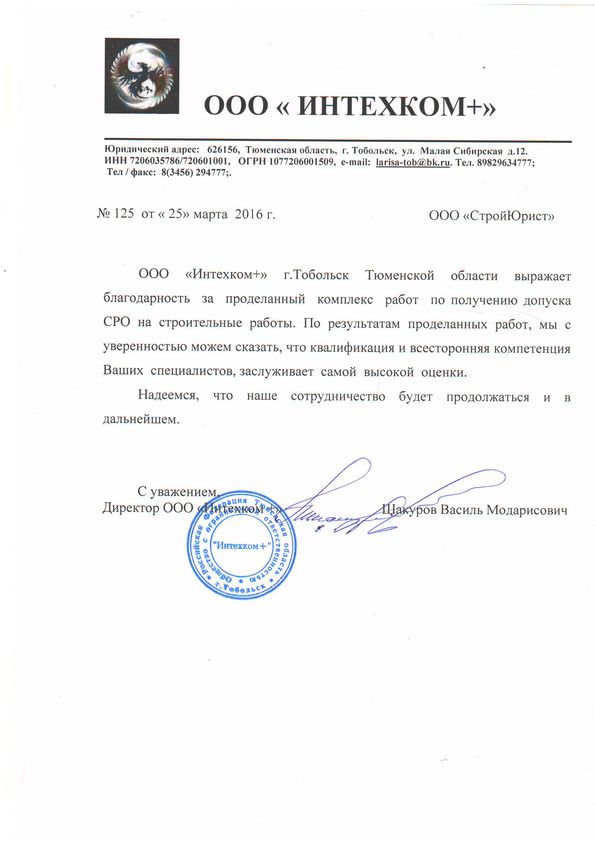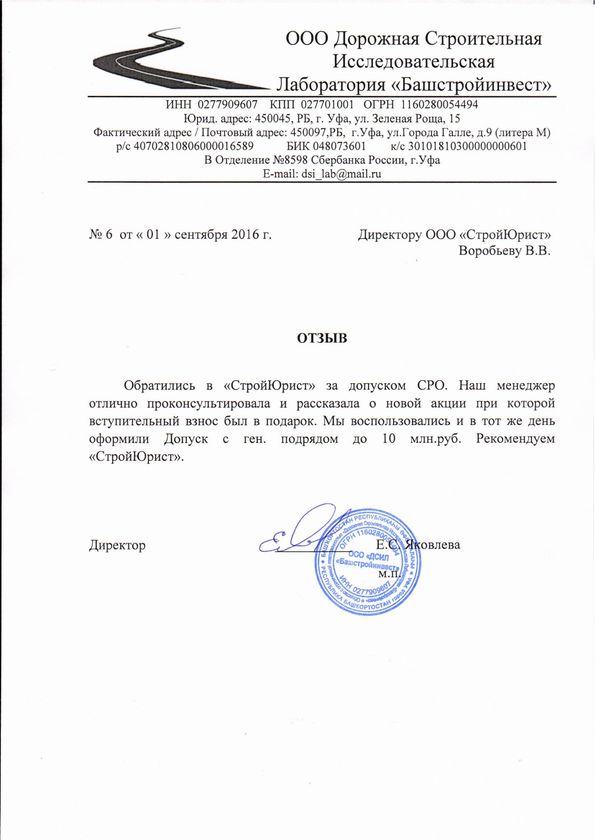 Отзывы клиентов "СтройЮрист" по вступлению в СРО в Люберцах
