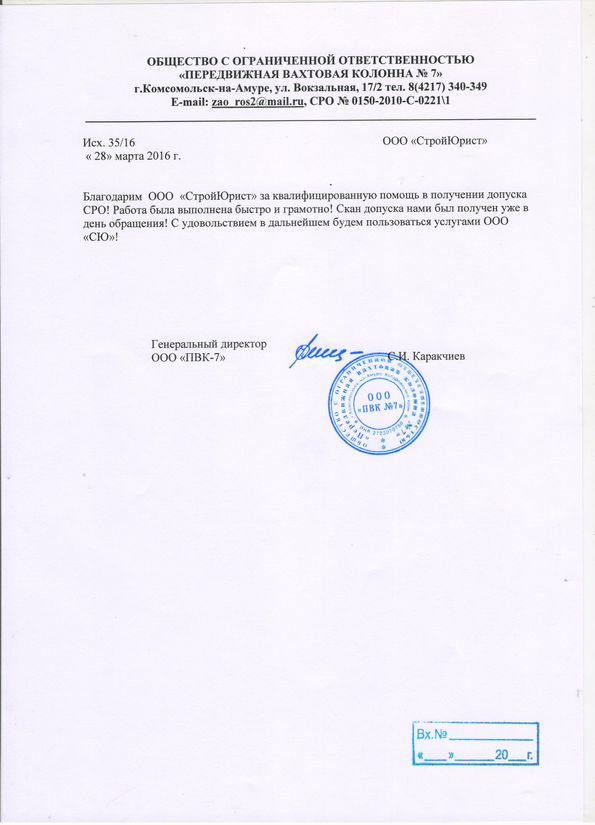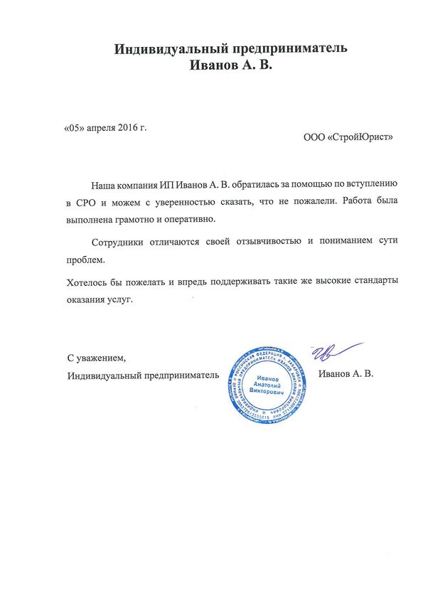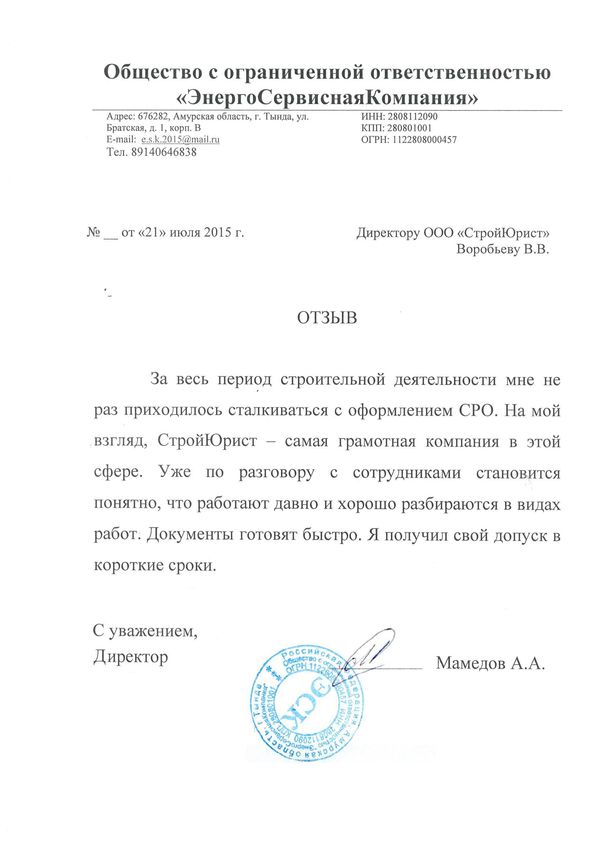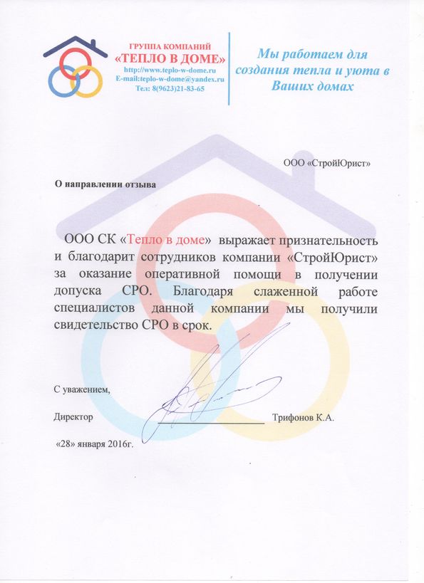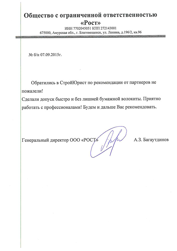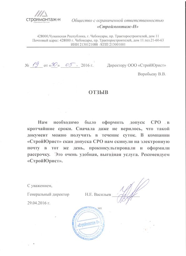 Отзывы клиентов "СтройЮрист" по вступлению в СРО в Люберцах